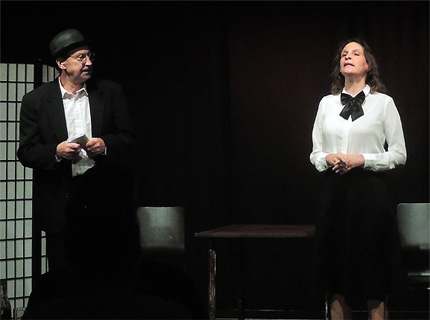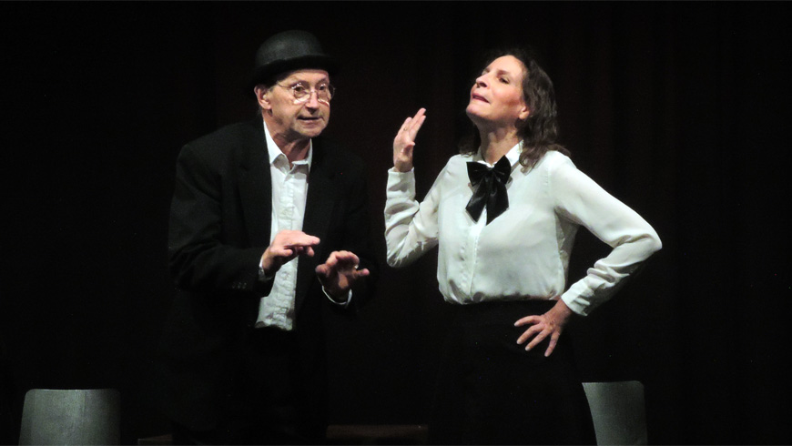 Ganz im Stil des Komikerduos und Liebespaares Karl Valentin und Liesl Karl-stadt traten Franz Schiefer und Nicole Gerfertz-Schiefer erneut in deren große Fußstapfen auf der Bühne. Franz Schiefer überzeugte als Komiker-Legende Karl Valentin, der mit Gisela verheiratet war, durch präzise eingesetzte Nuancen in Mimik und Gestik und gewann schnell das Publikum für sich. Sein Auftritt als Barfußtänzerin löste beim Publikum große Heiterkeit aus. Als Valentins schlag-fertige Geliebte Liesl Karlstadt brillierte Nicole Gerfertz-Schiefer, die häufig starke Nerven bewies und sie zog als Soubrette im Glitzerkleid alle Blicke auf sich. Ein hohes Maß an Spielfreude war den ebenbürtigen Bühnenpartnern wäh-rend des gesamten Abends deutlich anzumerken. Die Begeisterung des Publi-kums war am Sonntagabend deutlich spürbar. Und so kam es, wie es kommen musste: Der kurzweilige Theater-Kabarettabend mit Karl Valentin und Liesl Karl-stadt bzw. Franz Schiefer und Nicole Gerfertz-Schiefer endete mit verdientem, tosendem Applaus. Bravo!