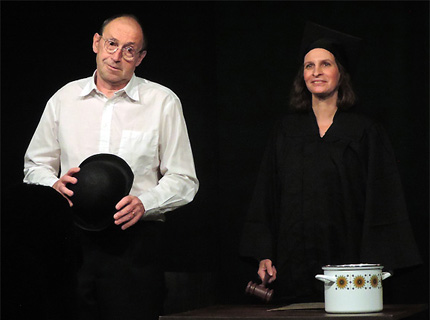 Schauspieler Franz Schiefer hält sich seit Beginn der Pandemie weiterhin für den Münchner Originalhumoristen Karl Valentin. Er ist hypochondrisch, häufig ner-vös und sehr sensibel. Nicole Gerfertz-Schiefer lässt ihren Gatten in diesem Glauben und spielt die Rolle seiner großartigen Bühnenpartnerin und Geliebten Liesl Karlstadt – das sorgt nach ihren Angaben für mehr Gelassenheit im Alltag. Das Publikum erfuhr, wie Karl und Liesl sich kennenlernten. Mit viel Augenzwin-kern diskutierten der Pessimist und die Optimistin über die Liebe im Herbst des Lebens, Affären und Depressionen. Im Sketch „Ehescheidung vor Gericht“ über-nahm sie den Part des Richters, während er in verschiedenen Rollen – von der Ehefrau bis zu den Zeugen – sein schauspielerisches Talent unter Beweis stellte.